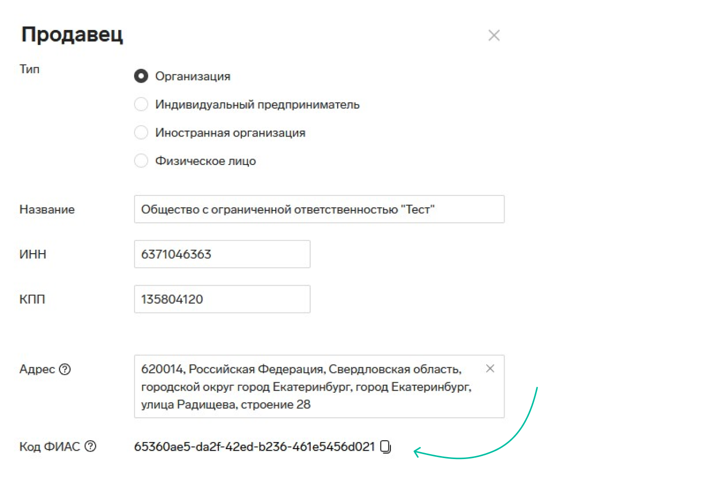 Указать идентификатор ФИАС в УПД можно одним из двух способов: