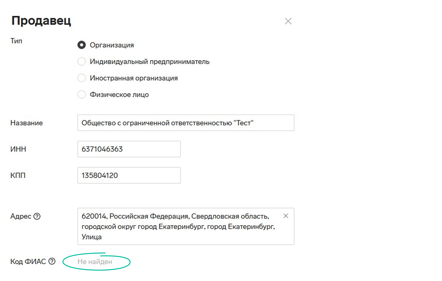 В этом случае код ФИАС нужно заполнить вручную в блоке Дополнительные сведения: